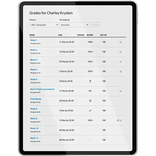 - Full parent access to attendance, teacher feedback, homework and deadlines.